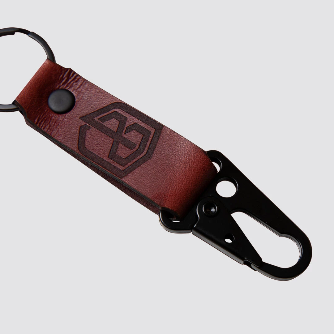Born Primitive Leather Keychain features the BP logo and Born Primitive name along with a key ring on one end and a clip on the other.Â