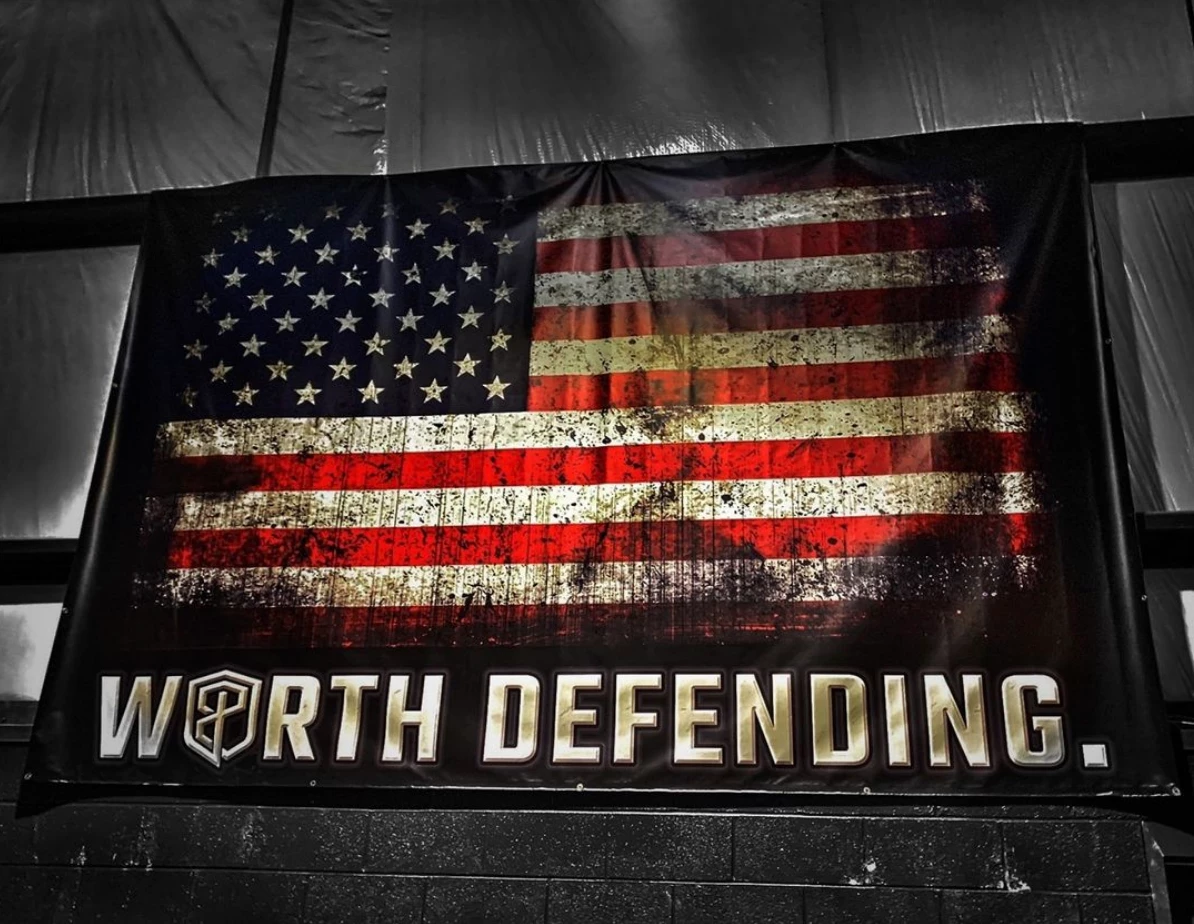 This black Worth Defending 4 ft x 6Â ft banner will look great in any gym, garage gym or even on your living room! Includes 6 grommet holes for easy hanging!