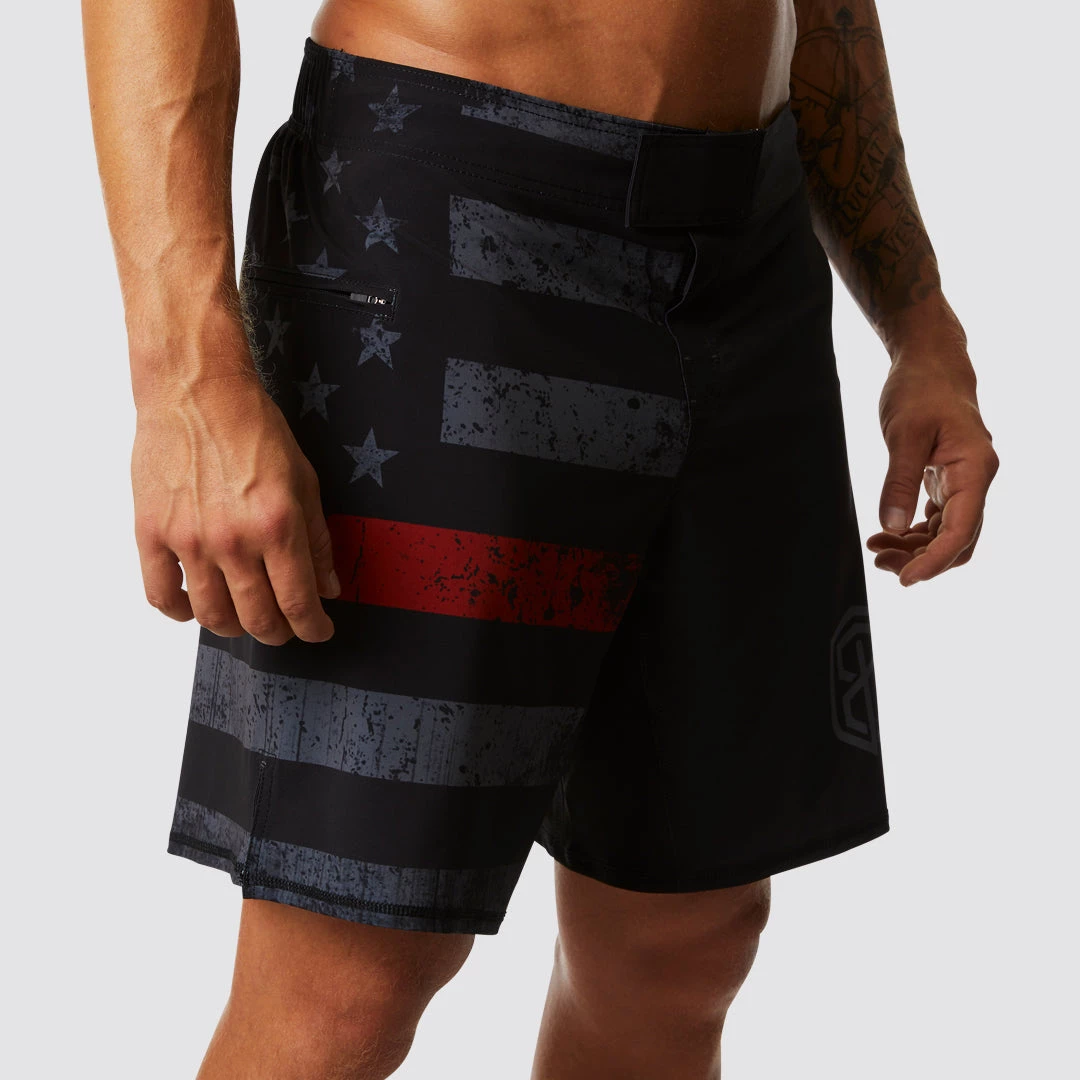 Born Primitive American Defender Shorts 3.0 Velcro Closure (Thin Red Line Gunmetal) Patriotic
