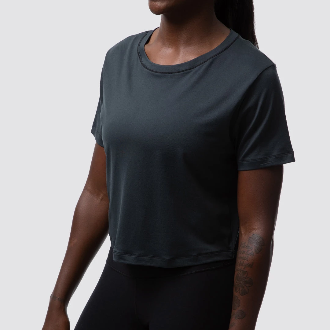 The Athleisure Crop Tee features our amazing athleisure material in a tee with sleeves and a crop cut.Â