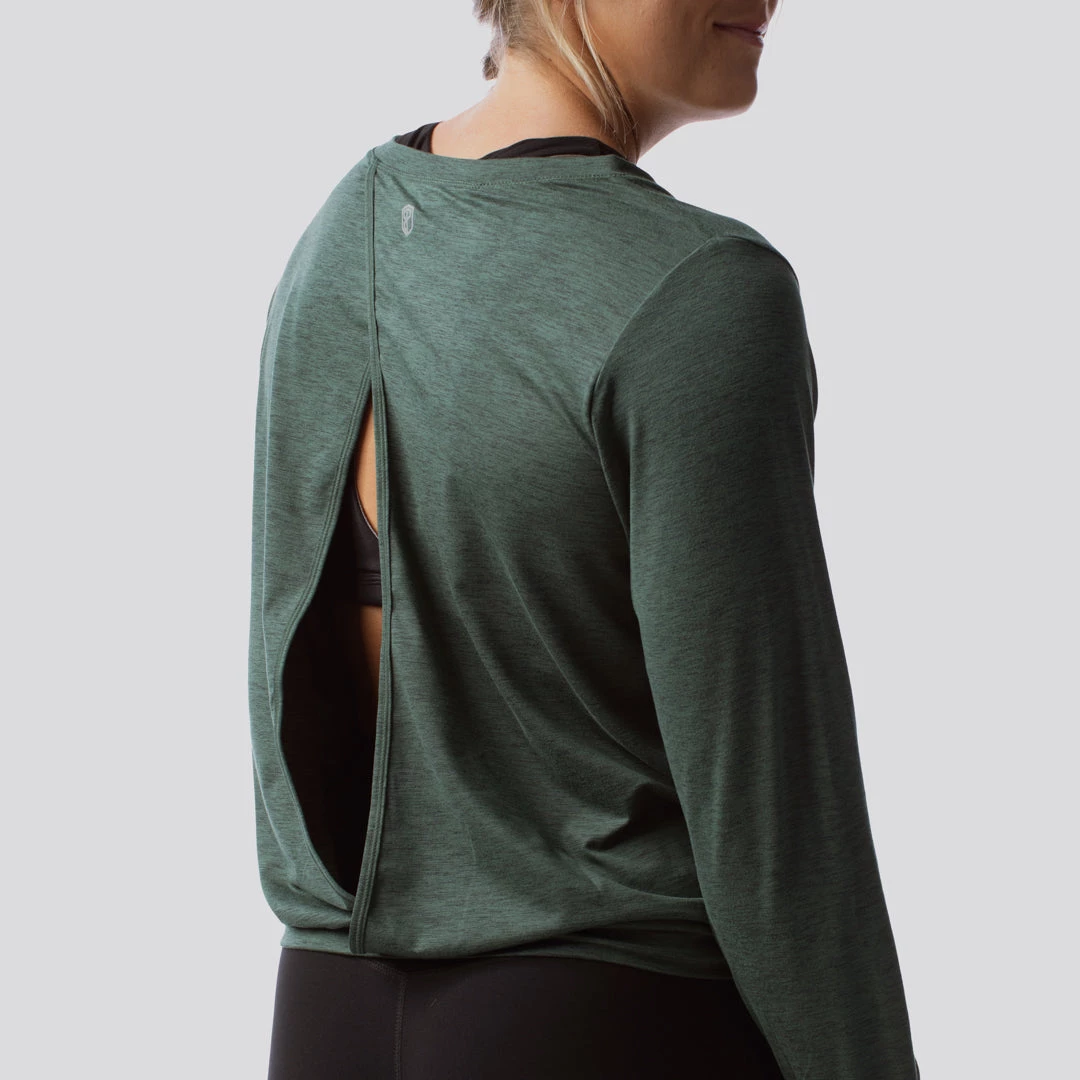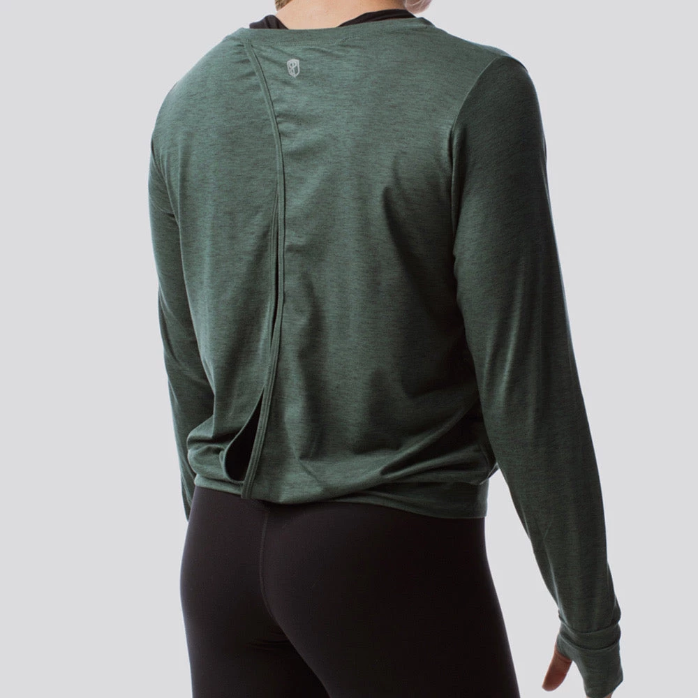 The Athleisure Warm Up Long Sleeve features a premium, super-soft yet sturdy material. This long sleeve has an open back and thumb holes. Rock your favorite Born Primitive sports bra with this shirt.