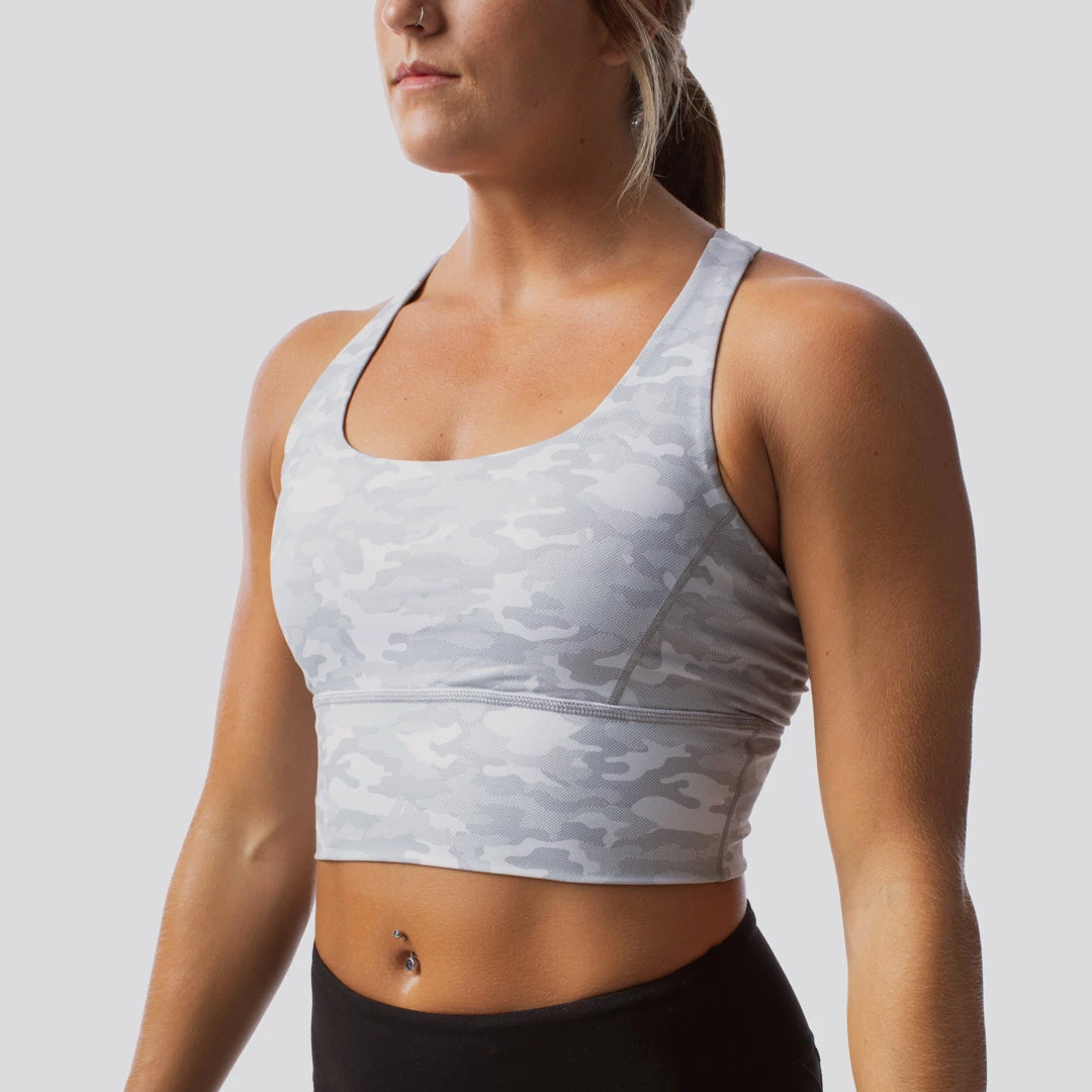 From an intense yoga class to the toughest workout you’ve ever tackled…stay covered and comfortable in our Intensity Bra. This women’s grey camo avalanche sports bra features an extended body and soft, supportive straps. You can even wear it out on the town if that’s your style! Either way, you’re sure to love it!
