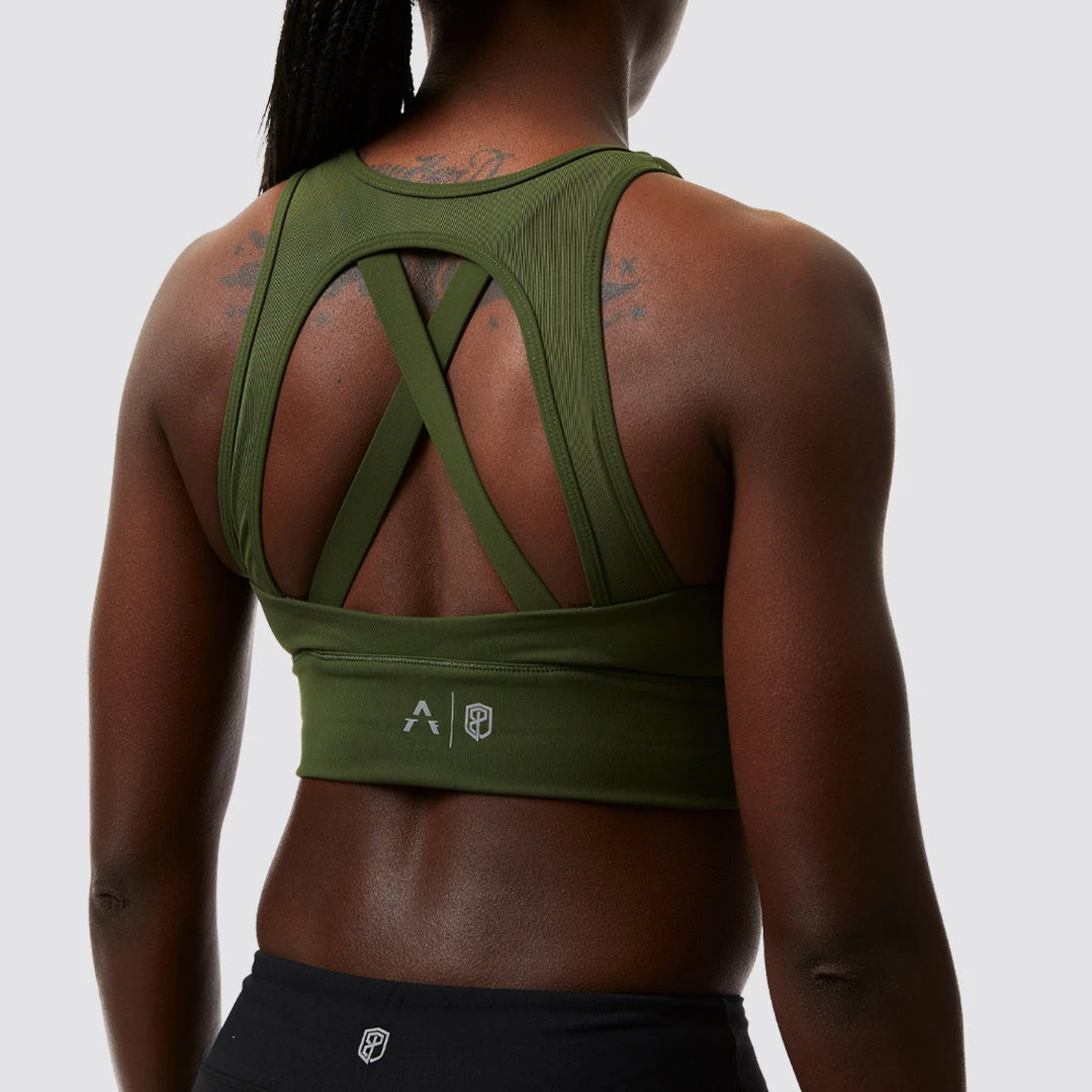 This sports bra is one of our highest support bra. It also features an extended body fit that is beyond flattering. This women’s X-Factor sports bra features a thicker strap over the shoulder for increased support that transitions into a mesh back. You’ll welcome this bra to your wardrobe with open arms!