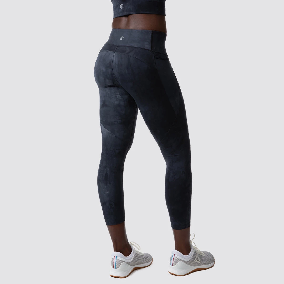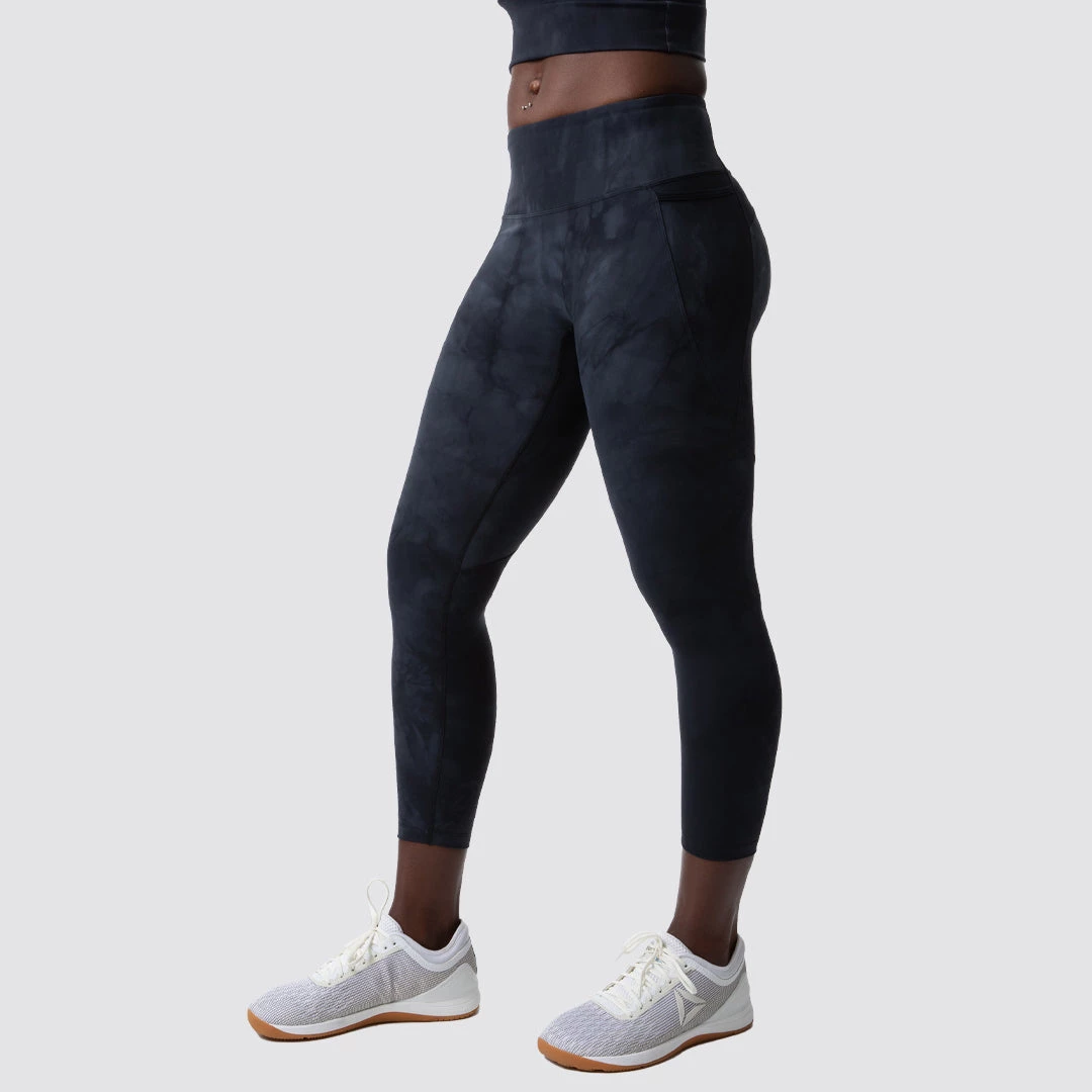 These leggings feature a brand new tie dye material! They have a high waist and wide waistband that will keep you covered. These leggings have pockets on each outer thigh and are a 7/8 length and do not have a front seam.