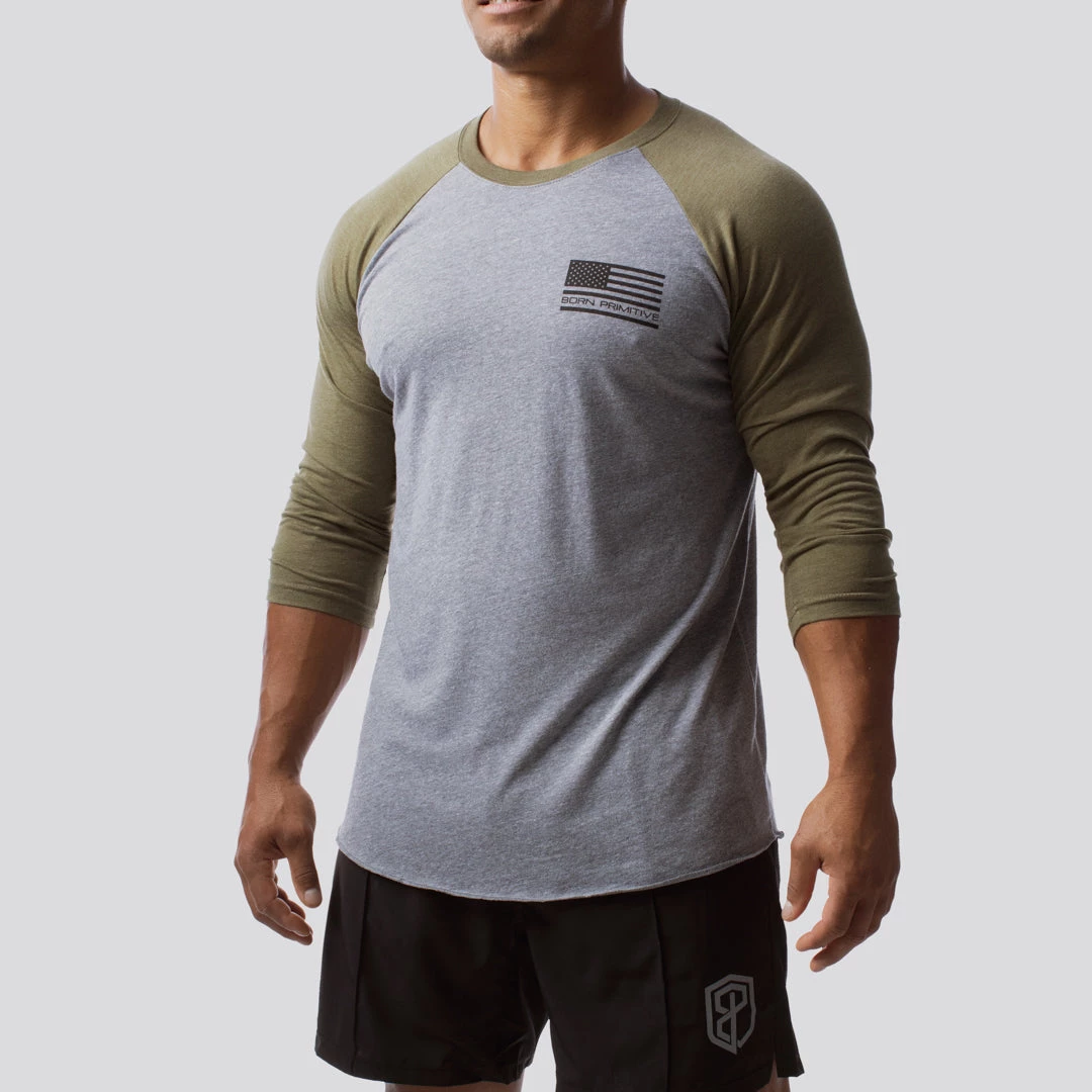 Our tri-blend 3/4 raglan is a perfect blend that is incredibly soft with great drape, stretch and recovery. Heather colored with a vintage look.