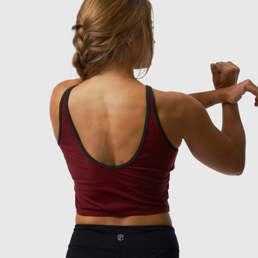 The Gratitude Crop Tank is a part of our AScudds GRIT Collection. It was curated by Alison herself and features a high, scoop neck front, a minimal back, with a secondary built in bra layer and then an extended body crop covering.