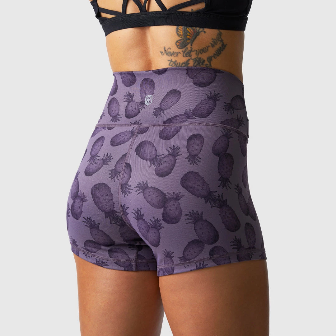 The Hustle Booty Short is a part of our Bethany Shadburne Collection. It was curated by Bethany herself and features a crisscross waistband, high rise, and a 3.5” inseam. These women’s light purple pineapple athletic booty shorts are just the right length to take you from the gym to on-the-go.