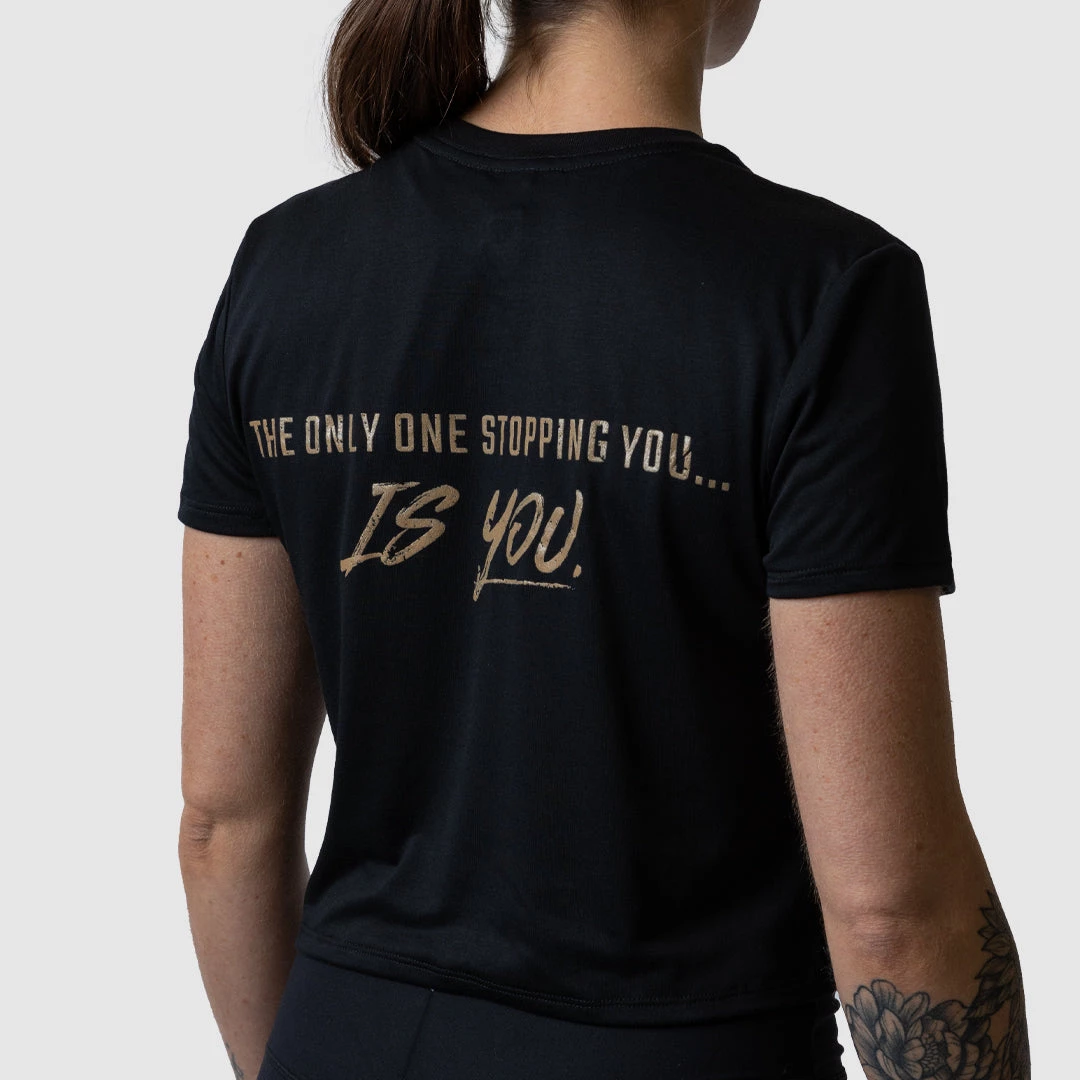 This comfortable, flowy crop gives you plenty of room to move throughout lifts and workout. This modest-crop tee with inset sleeves creates an unforgettable silhouette that you will have to have in your fitness apparel wardrobe!