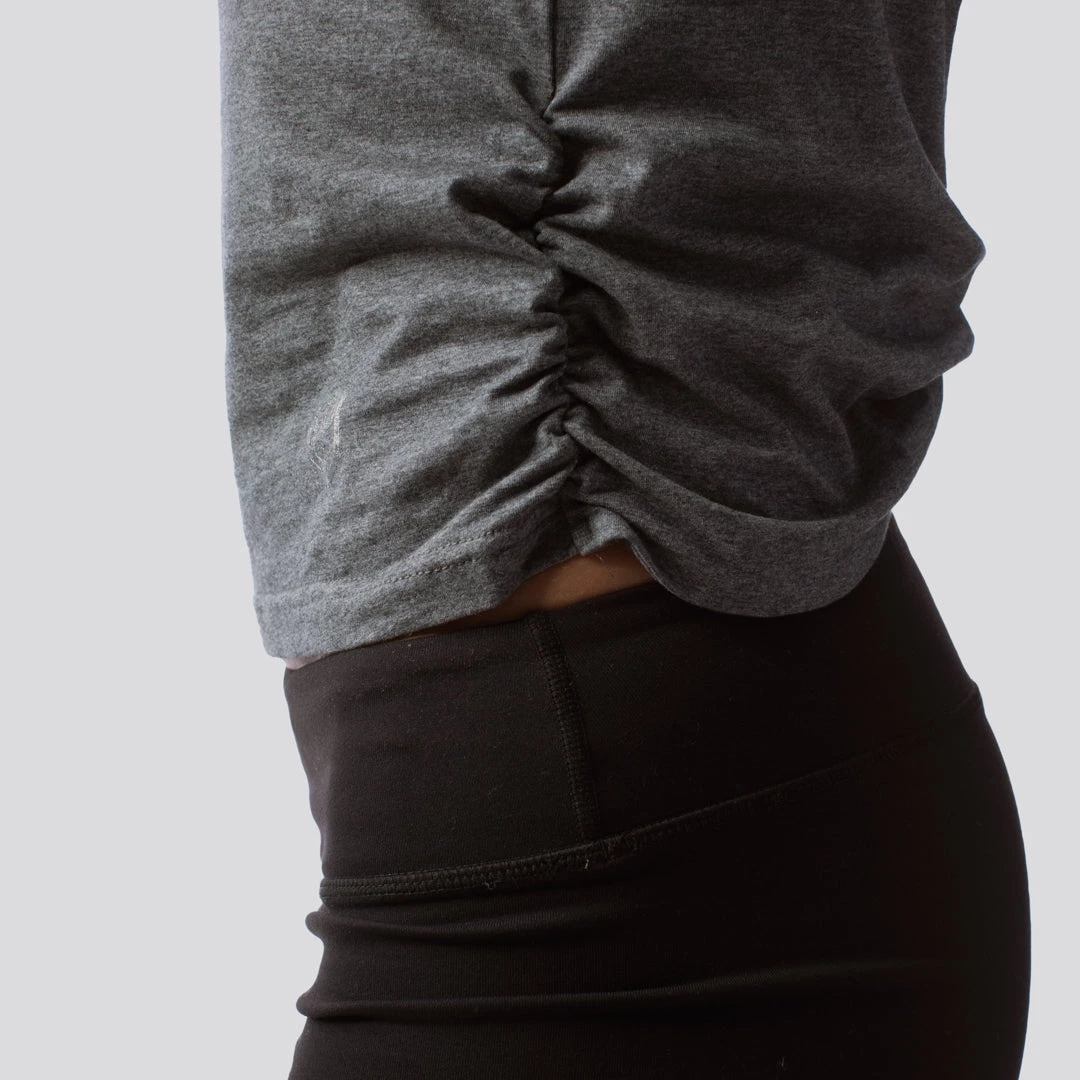 The Comeback Tank is the perfect length and features ruching on the sides and an open back with a twist at the bottom. This is sure to be one of your new favorite tanks for inside of the gym and out!