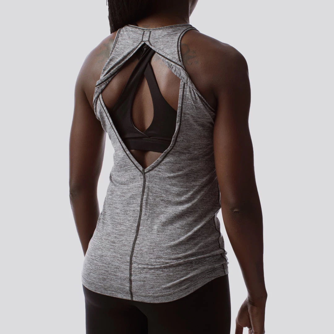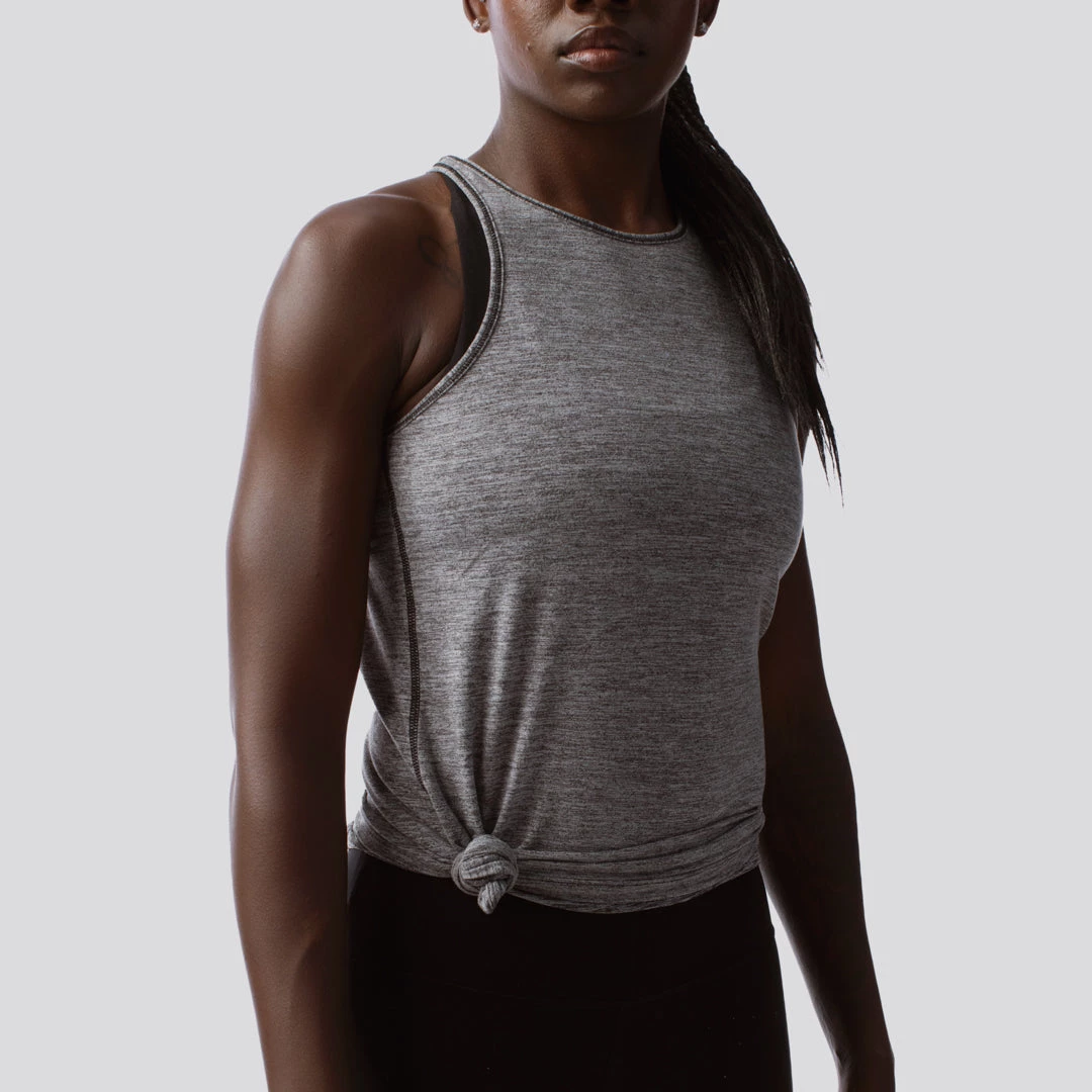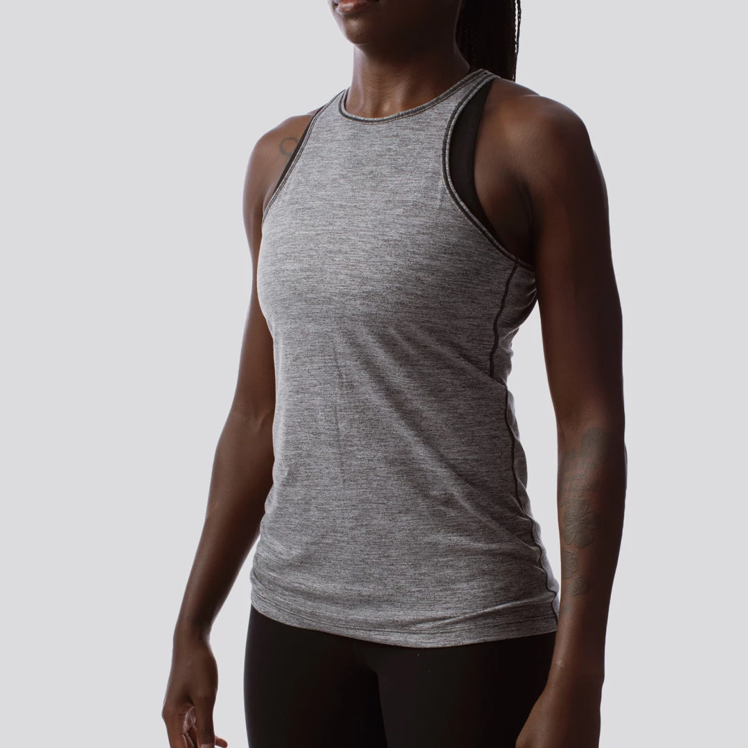 The Edge Tank belongs to our Athleisure Series and you’ll immediately know why when you try it on. This high neck workout tank features a premium, super-soft yet sturdy material that gives these an edge (pun intended) over all other tank tops in your closet. The high neckline and open back are an added bonus, making this heather grey tank top stand out.