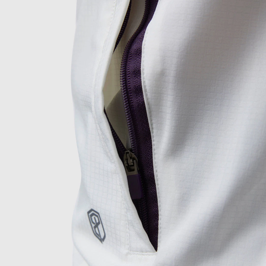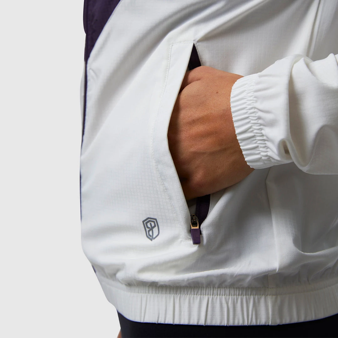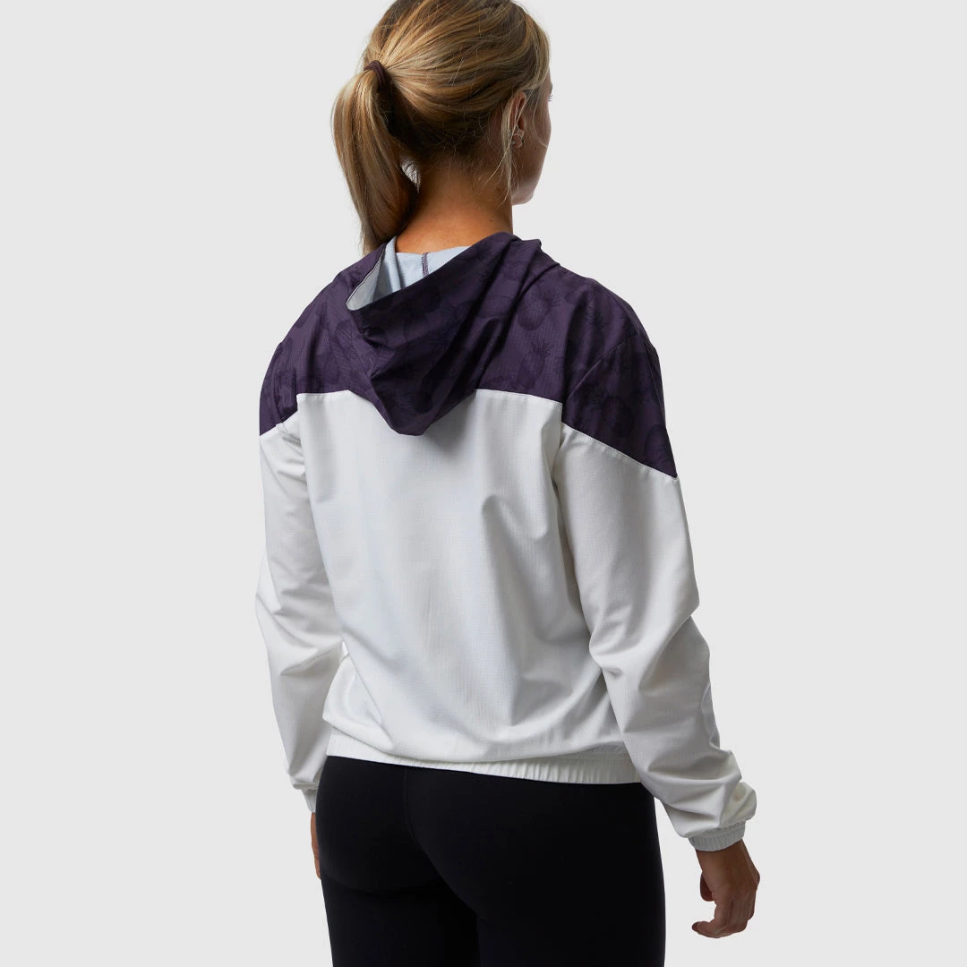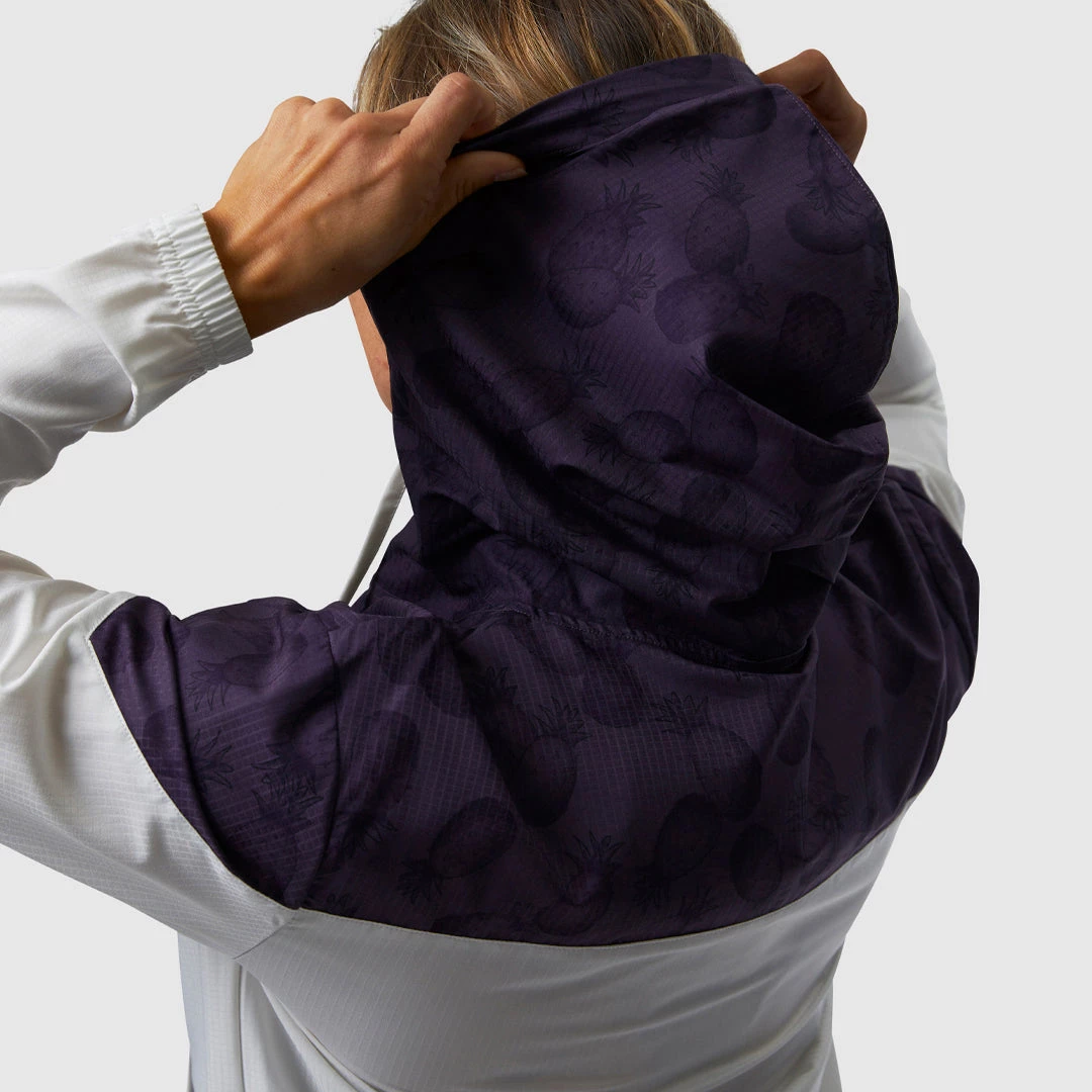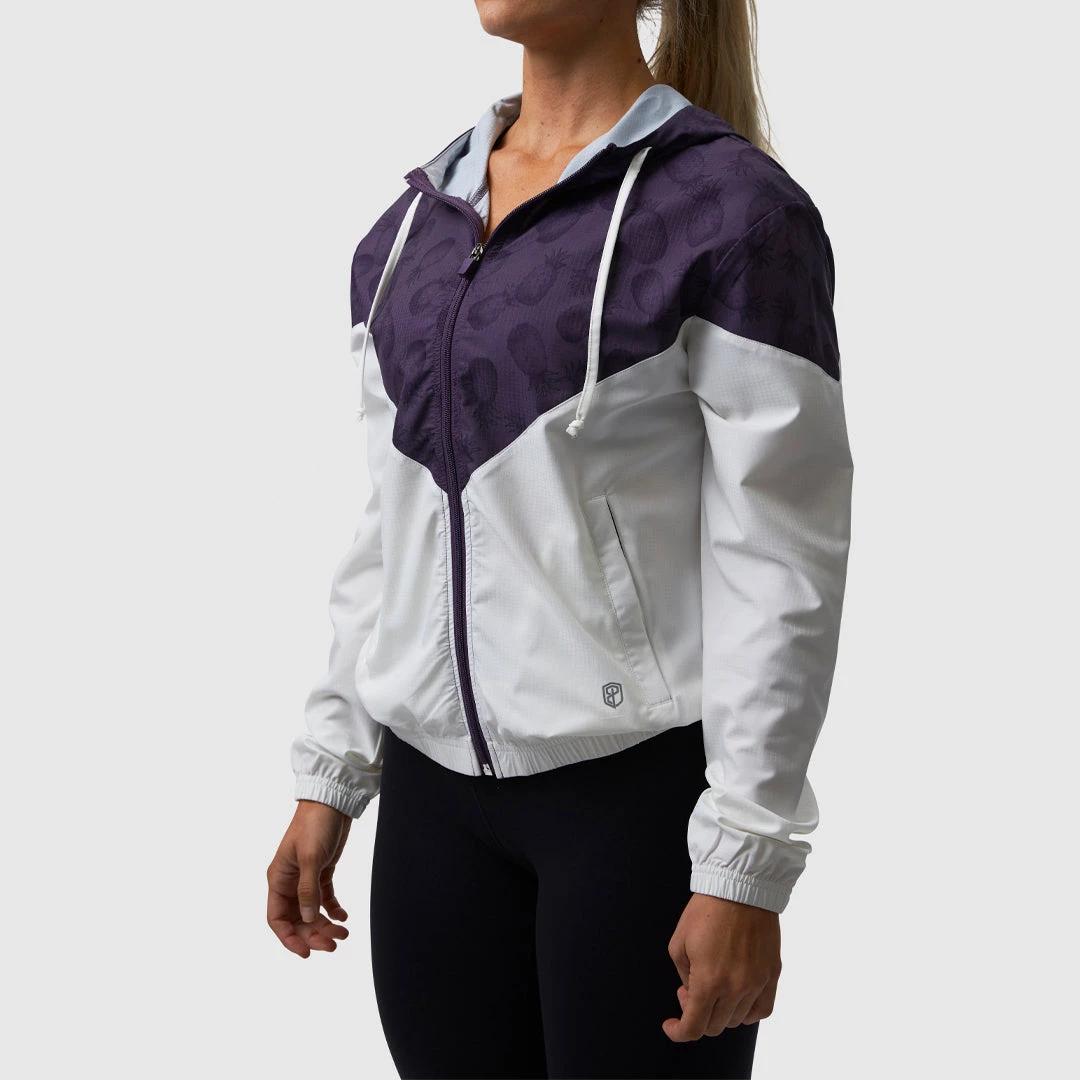 The Ohana Jacket is a part of our Bethany Shadburne Collection. Curated by Bethany herself, it features a retro color-blocked design. This light weight jacket features a full-length zipper, dual front zipper pockets, drawstring hood, and a two-toned color design of white and a pineapple print. With an elastic bottom, expect this jacket to be close fitting.