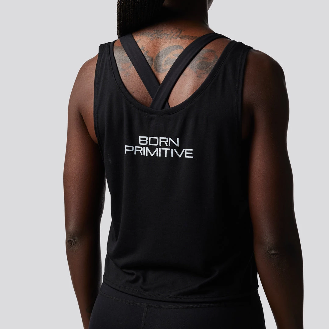 This comfortable, black flowy USA crop top gives you plenty of room to move throughout lifts and workouts but do so in style! Featuring our American Flag Born Primitive Logoย this is the perfect crop top for Memorial Day, 4th of July and basically every other day of the year!