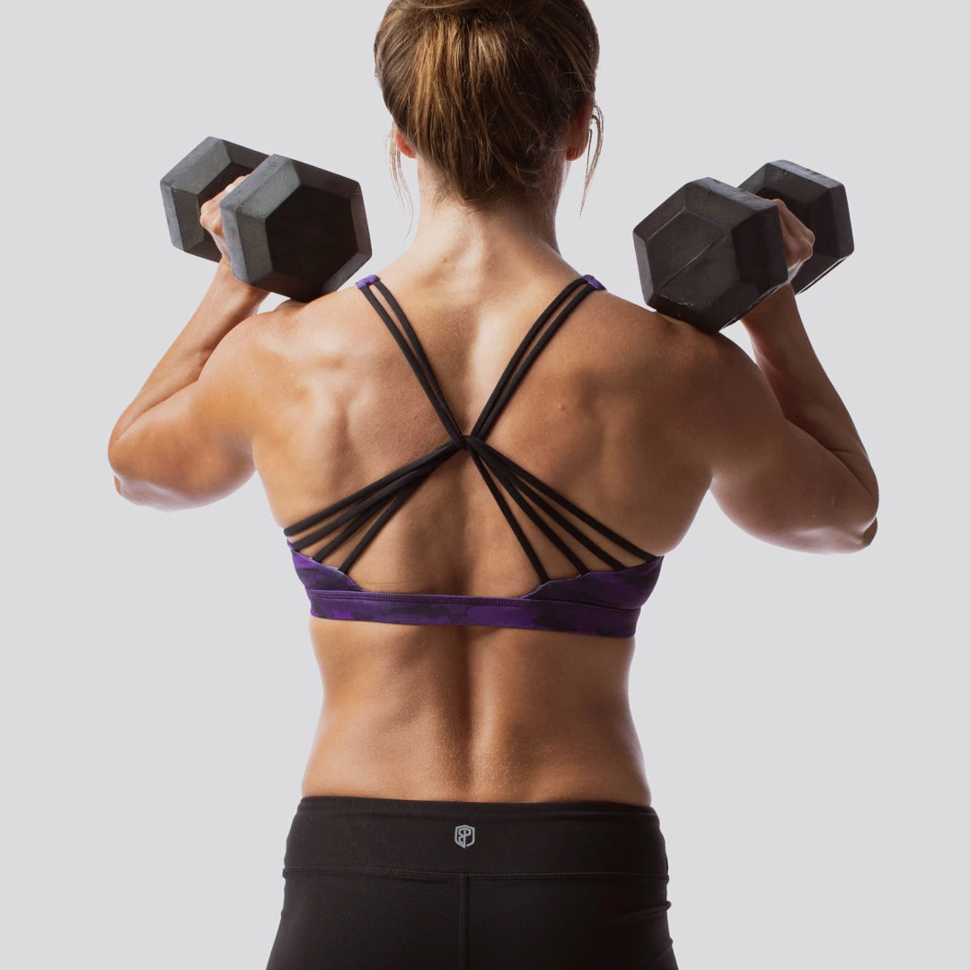 We took our BEST-SELLING Vitality Sports Bra and gave it a new, fun back! This purple camo sports bra has the same fit and support, but a new look for you to rock! Keep up with the latest “strappy back fashion” in our Vitality Sports Bra 2.0![break]